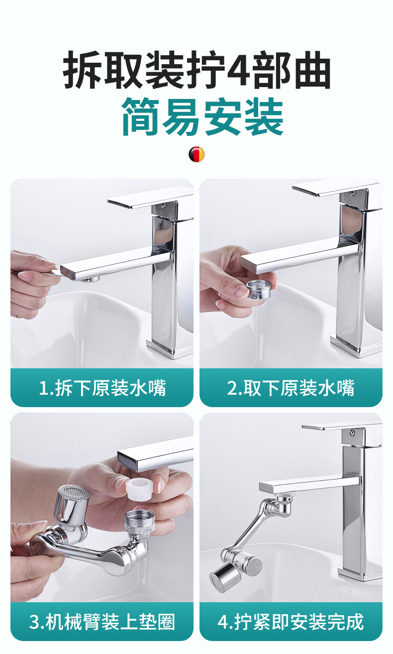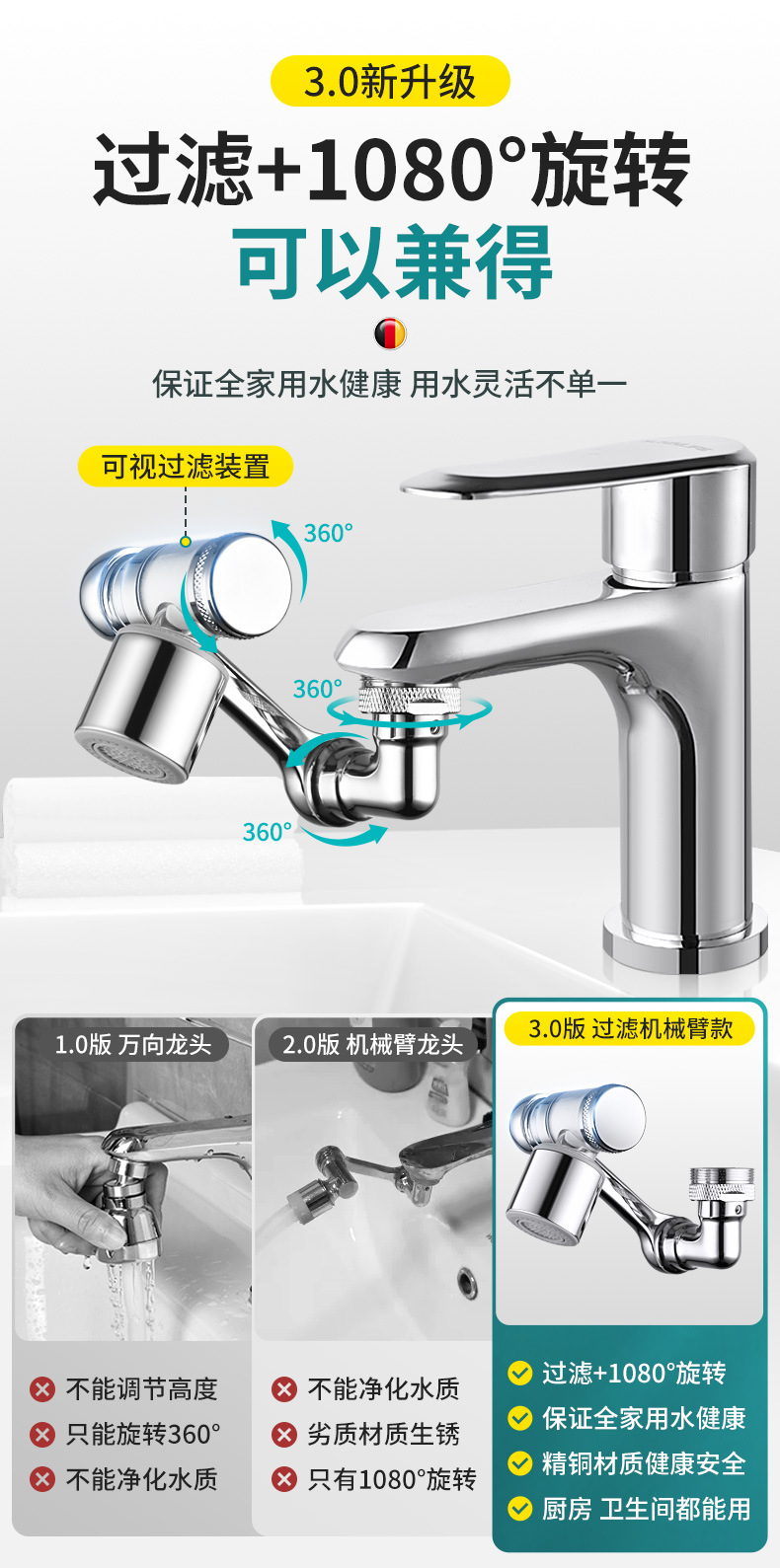 1080 Degree Filter Arm Universal Rotary Extender Multi-Function Universal Faucet Connector Mechanical Arm Water Nozzle